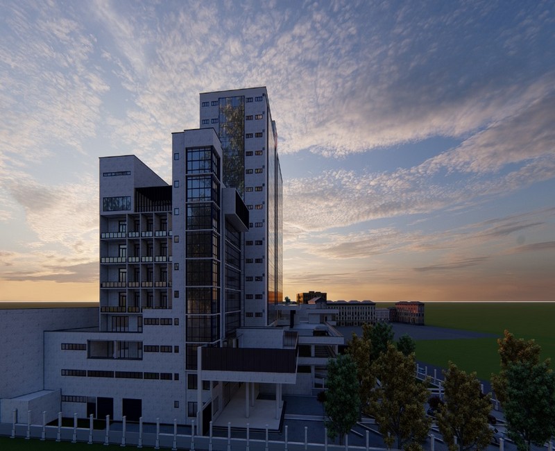 This development is a state-of-the-art, mixed-use office block strategically designed to integrate commercial, political, financial, and hospitality functions into a cohesive modern complex. The project is located in a prime urban setting, ensuring accessibility and visibility.