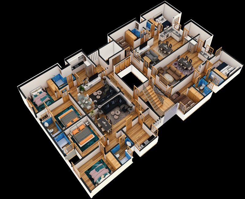 Circulation & Accessibility. Vertical circulation through high-speed passenger lifts and fire-rated staircases. Universal accessibility is ensured with ramps, wide corridors, and lift access to all floors. Safety compliance with fire exits, smoke detectors, and emergency systems.